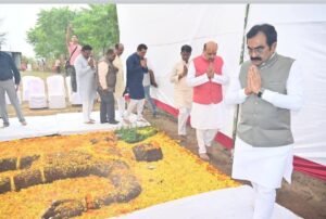 कार्यक्रम के समापन पर लोक निर्माण मंत्री श्री सिंह ने नृसिंह पीठाधीश्वर स्वामी नृसिंह दास जी महाराज एवं संत ज्ञानेश्वरी दीदी का सम्मान कर उनका आशीर्वाद लिया। स्वामी नृसिंहदास जी महाराज ने भी लोक निर्माण मंत्री श्री सिंह का शाल और श्रीफल भेंटकर अभिनन्दन किया।