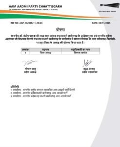 उन्होंने आगे कहा कि आगामी 2028 विधानसभा चुनावों को ध्यान में रखते हुए राज्यसभा सांसद एवं प्रदेश प्रभारी डॉ. संदीप पाठक के नेतृत्व में पार्टी पंजाब और गुजरात जैसे राज्यों में सफल प्रयोगों की तर्ज पर छत्तीसगढ़ में भी मजबूत रणनीति पर काम कर रही है, जिसमें प्रत्येक कार्यकर्ता की सक्रिय भूमिका अहम होगी।