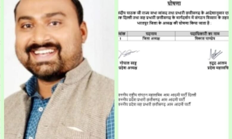 विकास पांडेय बने आम आदमी पार्टी के नये जिला अध्यक्ष