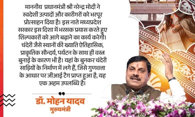 “माननीय प्रधानमंत्री श्री नरेंद्र मोदी जी ने स्वदेशी उत्पादों और कारीगरों को भरपूर प्रोत्साहन दिया है। मध्यप्रदेश सरकार भी इसी दिशा में पूरी शक्ति से कार्य करेगी और शिल्पकारों को आगे बढ़ाने के लिए हर संभव प्रयास करेगी