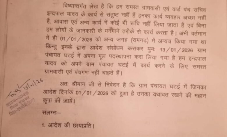 पंचों की अनुमति व जानकारी के बिना निकाली गई सरकारी राशि, बार-बार स्थानांतरण के बावजूद पुनः पदस्थापना — उच्च अधिकारियों के संरक्षण का आरोप