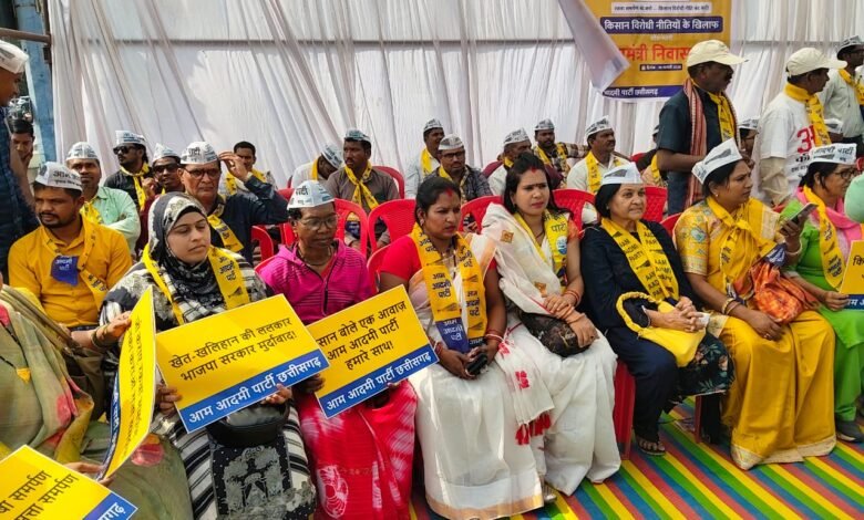 धान खरीदी में लापरवाही के विरोध में आम आदमी पार्टी का मुख्यमंत्री निवास घेराव