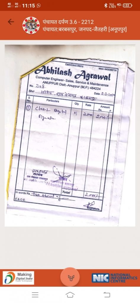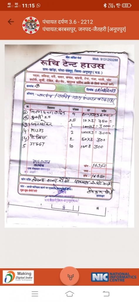 ग्रामपंचायत के सरपंच गोरेलाल और सचिव सचिव लाखन सिंह मरावी ने इस बिल के माध्यम से ये साफ कर दिया कि ग्राम पंचायत के सरपंच सचिव
