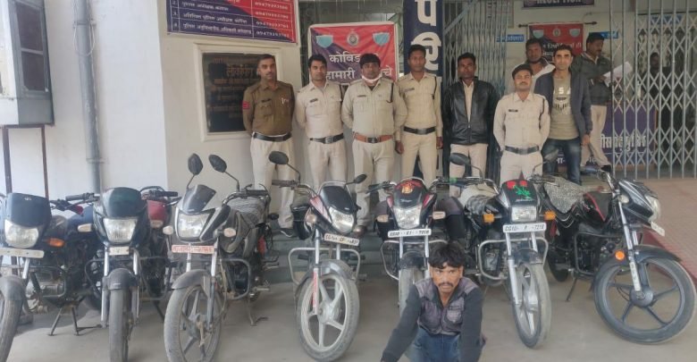 चोरी के इस प्रकरण में 1 आरोपी को गिरफ्तार किया गया है जिससे चोरी की 7 मोटरसाइकिल बरामद की गई है।