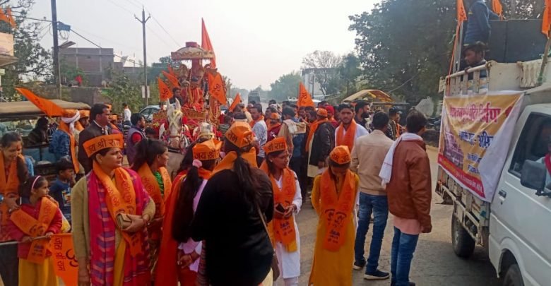 तहसील कोठी में राम मंदिर निर्माण हेतु जन जागरण रैली बड़े ही धूमधाम से निकाली गई