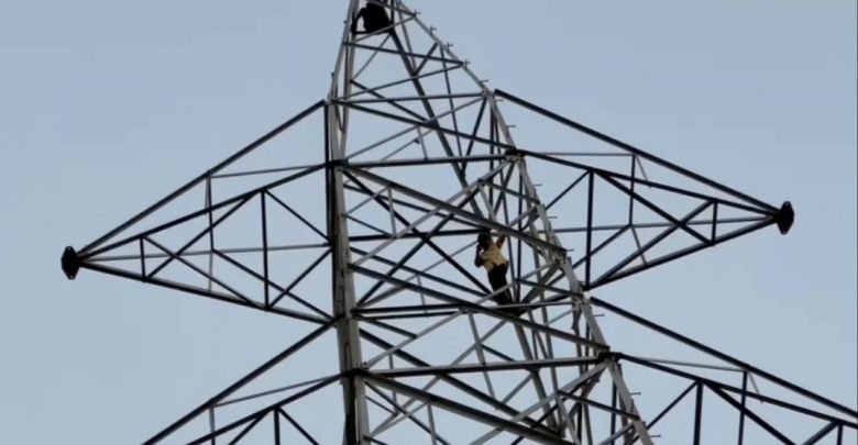 *एक्स्ट्रा हाई टेंशन टावर के ऊपर चढ़े बालक*