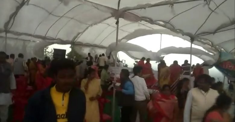 कोरिया बाल-बाल बचें विधानसभा अध्यक्ष चरणदास महंत, भाषण के दौरान गिरा पंडाल, चारों तरफ मचा भगदड