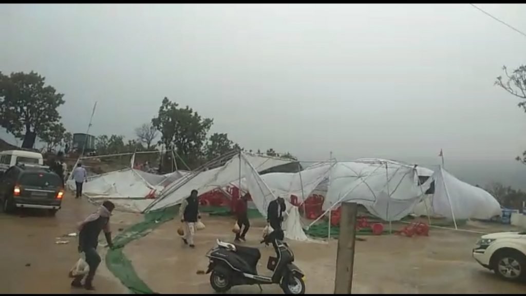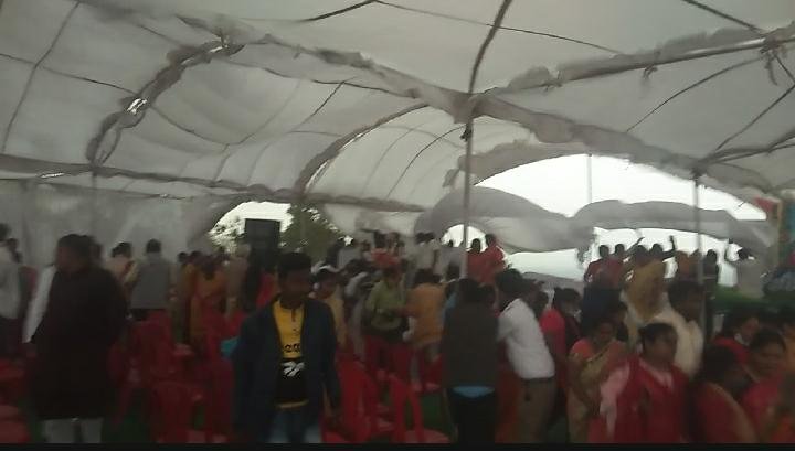 जी हां छत्तीसगढ़ कोरिया जिला मनेंद्रगढ़ में अचानक आई मौसम ने बदला करवट बारिश और हवा चली विधानसभा अध्यक्ष चरणदास महंत के भाषण मंच को बचाते नजर आए कांग्रेस के युवा कार्यकर्ता