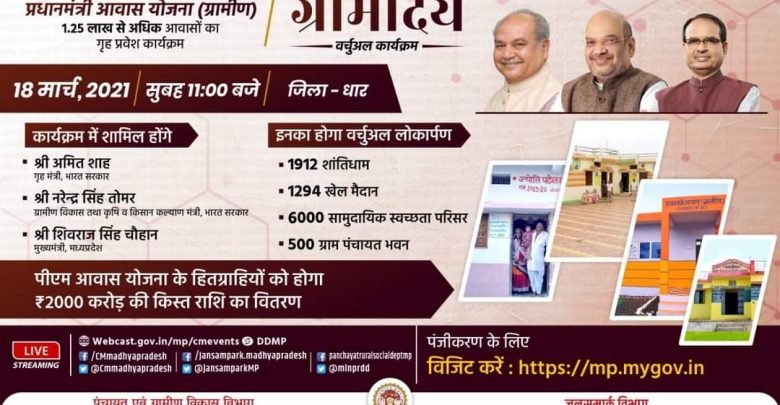 धार में आयोजित कार्यक्रम में केन्द्रीय मंत्री श्री Amit Shah और श्री Narendra Singh Tomar वर्चुअली शामिल होंगे