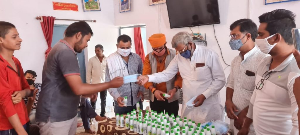 *ग्राम पंचा.साहपुर में कोरोना कर्फ्यू को गंभीरता से लेते हुए मास्क सेना टाइजर का वितरण हुए जनता से नियमों का पालन करने के लिए की गई अपील*