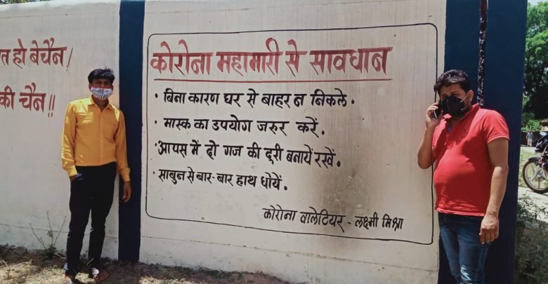 दीवार लेखन कर कोरोना वॉलिंटियर कर रहे हैं लोगों को जागरूक