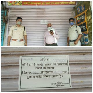 किराना, पान मसाला की दुकान 3 दिन के लिए सील शटर खोलकर बेच रहे थे सामान
