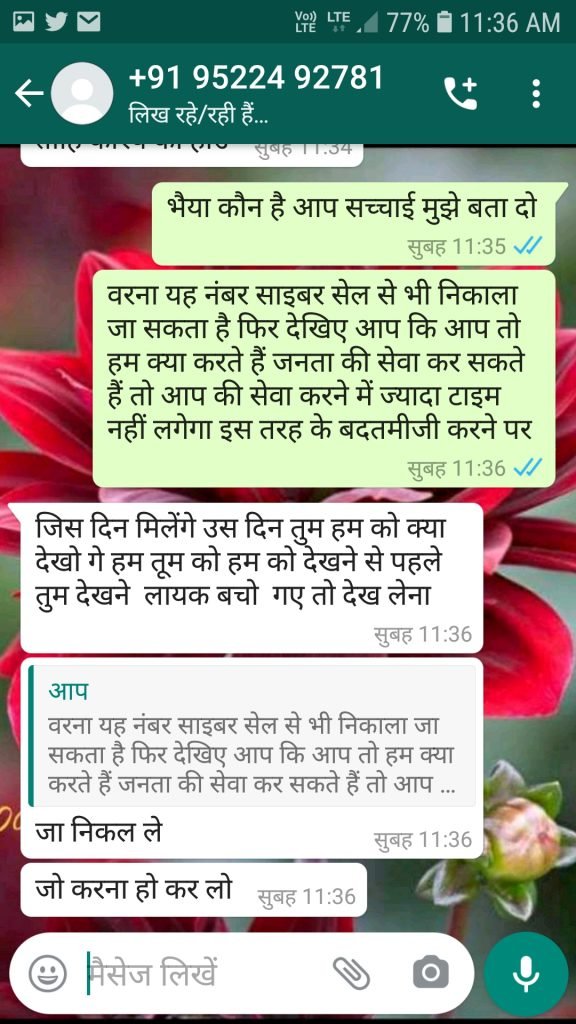 जी हाँ किसी अनजान शख्स के द्वारा धमकी भरे संदेश भेजे गए जिनमें गाली गलौच के साथ जान से मारने की भी धमकी भी दी गई है।