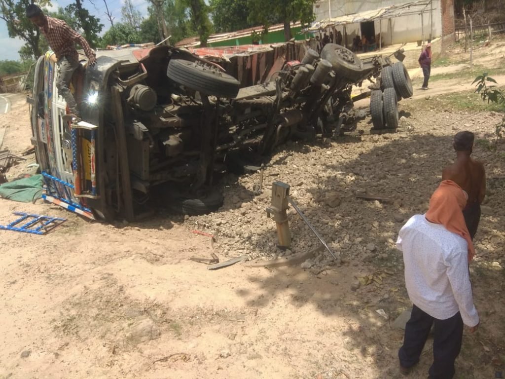 डोला– रामनगर थाना अंतर्गत फुलवारीटोला टर्निग में कटनी की ओर से चलकर रायपुर की ओर जा रही ट्रक क्रमांक CG21M-1572 का ट्रक फटने से ट्रक अनियंत्रित होकर बिजली के पोल को तोड़ते हुए पलट गई जिसकी सूचना ग्रामीणों द्वारा 108 को दी गई जब तक 108 मौके पर पहुँचती ग्रामीणों द्वारा ट्रक में फसे चालक सुदरलाल केवट,व हेल्फर जितेंद्र केवट को ट्रक से बाहर निकाल लिया गया था।