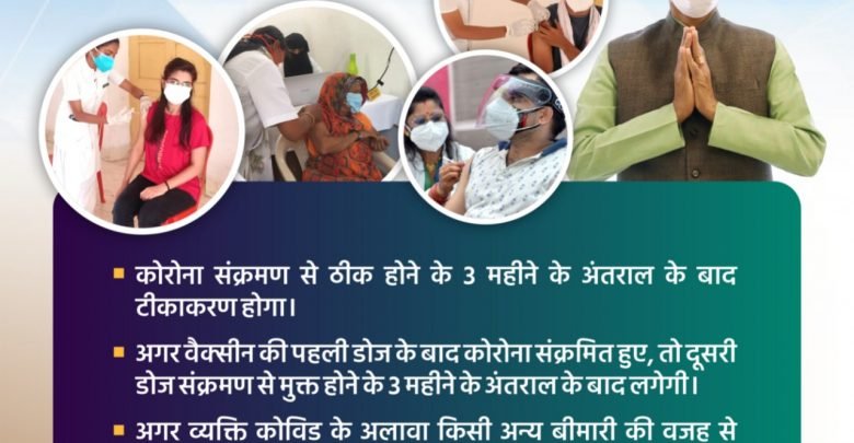 वैक्सीन की पहली डोज लेने के बाद कोरोना संक्रमित होने पर 3 महीने बाद लगेगी दूसरी डोज।