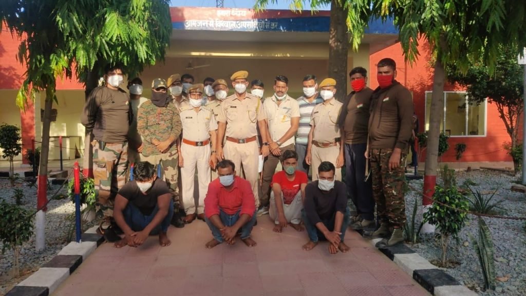 मौके पर से 4 व्यक्ति दहेन्द्र पुत्र रामपाल उम्र20 वर्ष निवासी नेहरू पार्क मनियां, मनोज जाट पुत्र सियाराम उम्र 28 वर्ष निवासी मालोनी पंवार, राहुल पुत्र राजू ठाकुर उम्र 19 वर्ष निवासी नगर घटा थाना दिहोली एवं पवन शर्मा पुत्र कमलेश शर्मा उम्र 35 वर्ष निवासी खरगपुर थाना कौलारी को गिरफ्तार किया