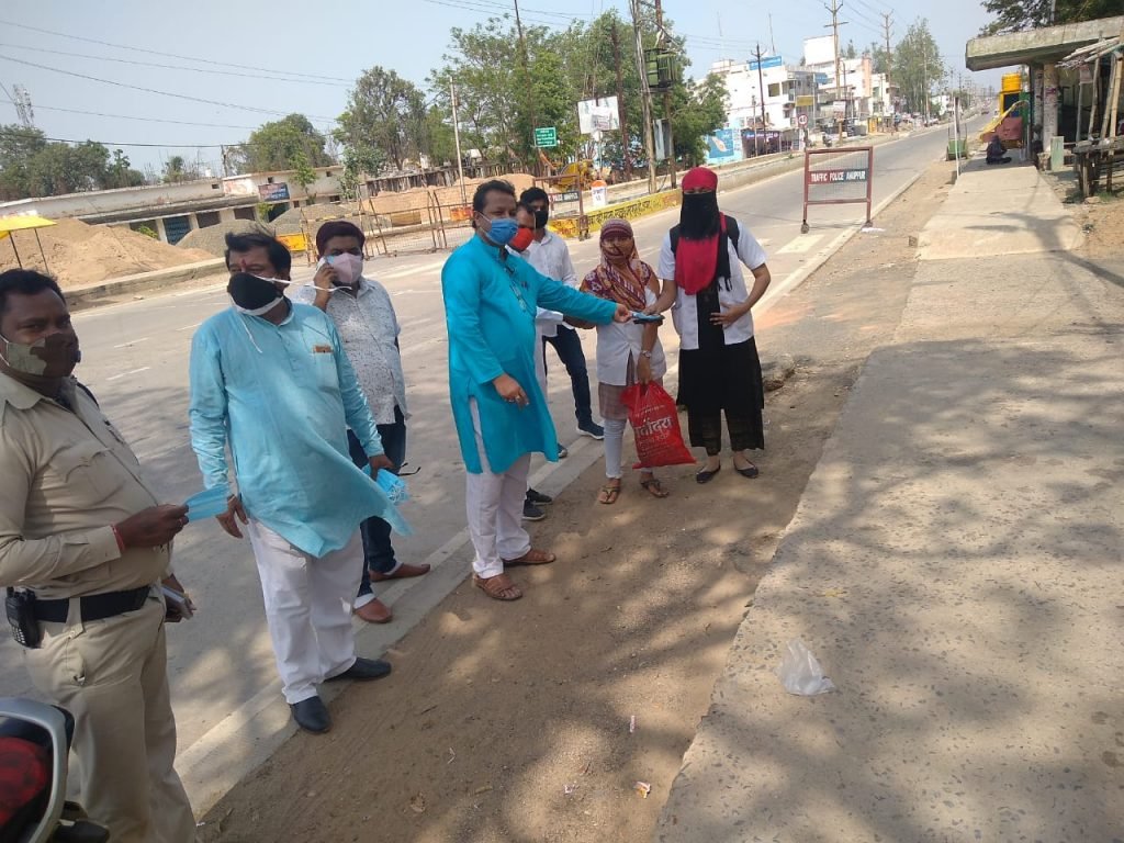 इस दौरान आज भारतीय जनता पार्टी मंडल पसान के मंडल अध्यक्ष सिद्धार्थ त्रिवेदी के नेतृत्व में कोरोना से बचाव के सभी नियमों को ध्यान में रखते हुए विभिन्न स्थानों पर जरूरतमंदों को मास्क वितरण किया गया..!