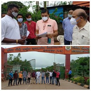 इंदिरा गांधी राष्ट्रीय जनजातीय विश्वविद्यालय में स्थानीय एवं जनजाति छात्रों को प्रवेश से वंचित किए जाने एवं समाज के विरुद्ध धोखाधड़ी, कूटरचना, कूटरचित दस्तावेज़ों का असली रूप में भारत सरकार के विरुद्ध उपयोग, बिल्डिंग घोटाला, पीएचडी घोटाला पर जाँच करवाने बाबत आज कुलपति को ज्ञापन सौंपा गया। ज्ञापन की प्रतिलिपि श्री रामनाथ कोविंद, महामहिम राष्ट्रपति, श्री नरेन्द्र मोदी, प्रधानमंत्री, श्री डॉ. रमेश पोखरियाल ‘निशंक’ मंत्री, केंद्रीय शिक्षा मंत्रालय, श्री शिवराज सिंह मुख्यमंत्री, पुलिस महानिदेशक, पुलिस मुख्यालय (पीएचक्यू), एस डी ओ पी, राजेंद्रग्राम, थाना प्रभारी, अमरकंटक थाना को भी दिया गया।