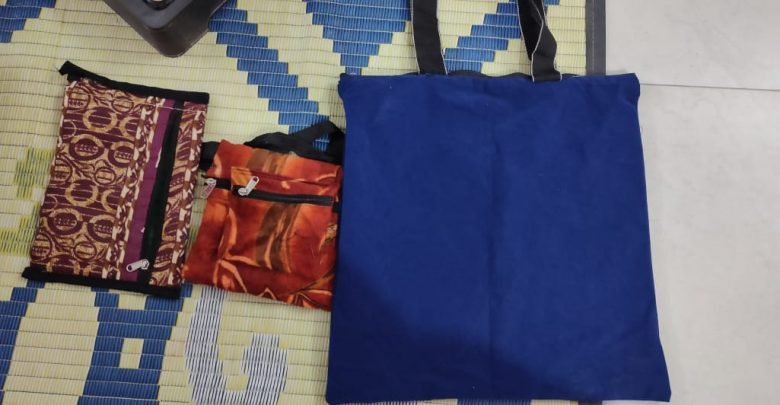इसी तारतम्य में बालिकाओं को वर्षा तनेजा द्वारा बैग बनाने का प्रशिक्षण दे रही है जिसमें छोटे – बड़े सभी प्रकार के बैग बनाए जा रहे हैं।