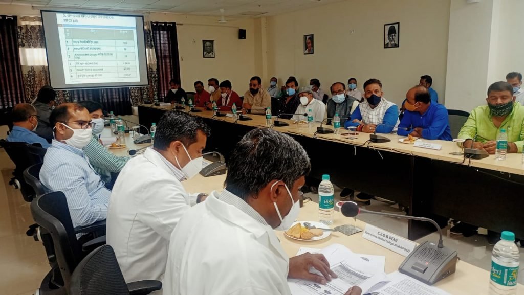 शहडोल जिले के प्रभारी मंत्री रामखेलावन पटेल ने दिन शुक्रवार दिनांक 23 जुलाई 2021 को मेडिकल काॅलेज शहडेाल में कोरोना की संभावित तीसरी लहर की तैयारियों की समीक्षा बैठक में निर्देशित कर रहे थें।