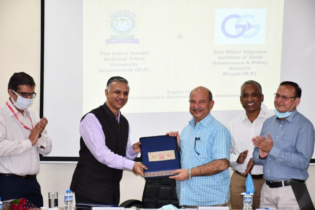 जनजातीय क्षेत्रों में शिक्षण सृजन एवं विस्तार के लिए अनुसंधान गतिविधियों से संबंधित सामान्य लक्ष्यों के साथ और सहयोगी अनुसंधान हित और विशेषज्ञता के क्षेत्रों में आपसी सहयोग और आदान – प्रदान के विकास के लिए आज इंदिरा गांधी राष्ट्रीय जनजातीय विश्वविद्यालय, अमरकंटक, मध्यप्रदेश और अटल बिहारी वाजपेयी सुशासन और नीति विश्लेषण संस्थान, भोपाल, मध्यप्रदेश ने एक हस्ताक्षरित समझौता ज्ञापन में प्रवेश किया। जिसमें प्रोफेसर प्रकाश मणि त्रिपाठी, कुलपति इंदिरा गांधी राष्ट्रीय जनजाति विश्वविद्यालय, अमरकंटक, मध्यप्रदेश एवं प्रोफेसर सचिन चतुर्वेदी, उपाध्यक्ष (कैबिनेट मंत्री दर्जा) अटल बिहारी वाजपेयी सुशासन और नीति विश्लेषण संस्थान, भोपाल, मध्यप्रदेश की महत्वपूर्ण भूमिका है।