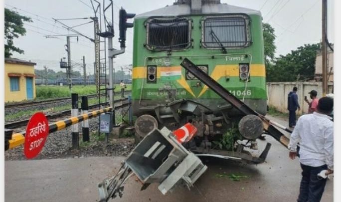 *बिना ड्राइवर के स्टार्ट होकर चल दिया रेल का इंजन कई खंभे चपेठ लेते हुए रेलवे फाटक में हुआ हादसा*