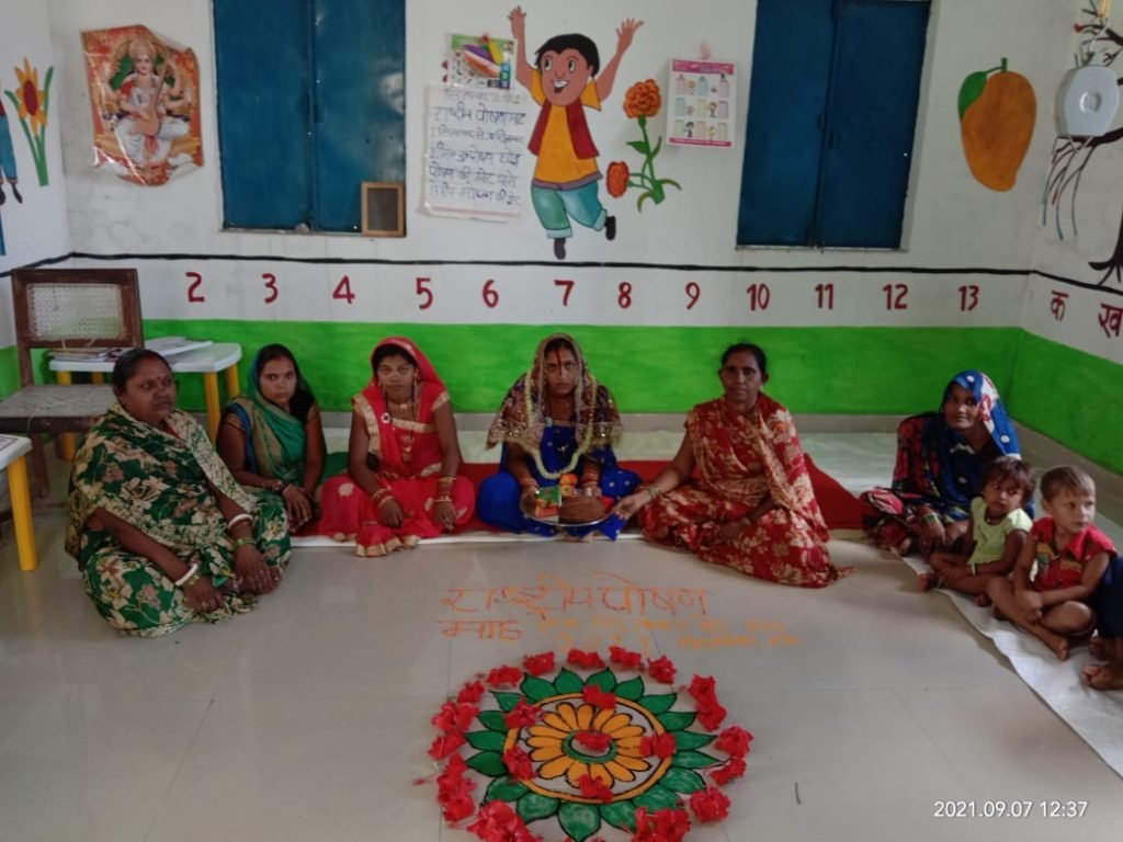सैम बच्चों का शीघ्र चिह्नांकन एवं संदर्भन कुपोषण की जटिलताओं को कम करता है पोषण माह का यही प्रमुख उद्देश्य है इसे अभियान के रूप में चलाया जाएगा। साथ ही पौधारोपण अभियान के तहत समस्त आंगनबाड़ी केंद्र एवं समुदायिक भूमि पर किचन गार्डन बनाया जाएगा इसमें फल एवं सब्जियां, सूक्ष्म पोषक तत्वों के महत्वपूर्ण स्त्रोत हैं और इन पोषक तत्वों का नियमित आहार में सम्मिलित करना अच्छे स्वास्थ्य के लिए आवश्यक है उन्होंने कहा कि किशोरी बालिकाओं को आयरन की गोली, प्रोटीन, सैनेटरी नैपकिन पैड, खून की जांच तथा स्वास्थ्य रेसिपी के बारे में जानकारी दी जाएगी उन्होंने प्रधानमंत्री मातृत्व वंदना योजना के बारे में भी जानकारी देते हुए कहा कि जब महिला प्रथम बार गर्भवती होती है तो वह मजदूरी नहीं कर पाती उसकी छत पूर्ति हेतु प्रधानमंत्री मातृत्व वंदना योजना के तहत ₹5000 की राशि मिलती है तथा उन्होंने कुपोषण को मिटाने के लिए कहां की कुपोषण छोड़ पोषण की ओर थामे क्षेत्रीय भोजन की डोर । उन्होंने टीकाकरण कराए जाने के संबंध में भी विस्तार से जानकारी देते हुए कोरोना टीकाकरण के महत्व के बारे में भी बताया और सभी से कोरोना का टीका लगवाने की अपील की हैं। कार्यक्रम में सेक्टर सुपरवाइजर चिंती घोरमारे एएनएम ममता सिंह चंदेल आशा कार्यकर्ता आशा शर्मा आंगनवाड़ी कार्यकर्ता सुनीता सिंह परिहार सुशीला जयसवाल सहायिका शांति जायसवाल भगवनीय केवट गर्भवती रानी पाव धात्री रोशनी प्रमिला सहित किशोरी बालिकाएं गांव मोहल्ले की महिलाएं उपस्थित थी।