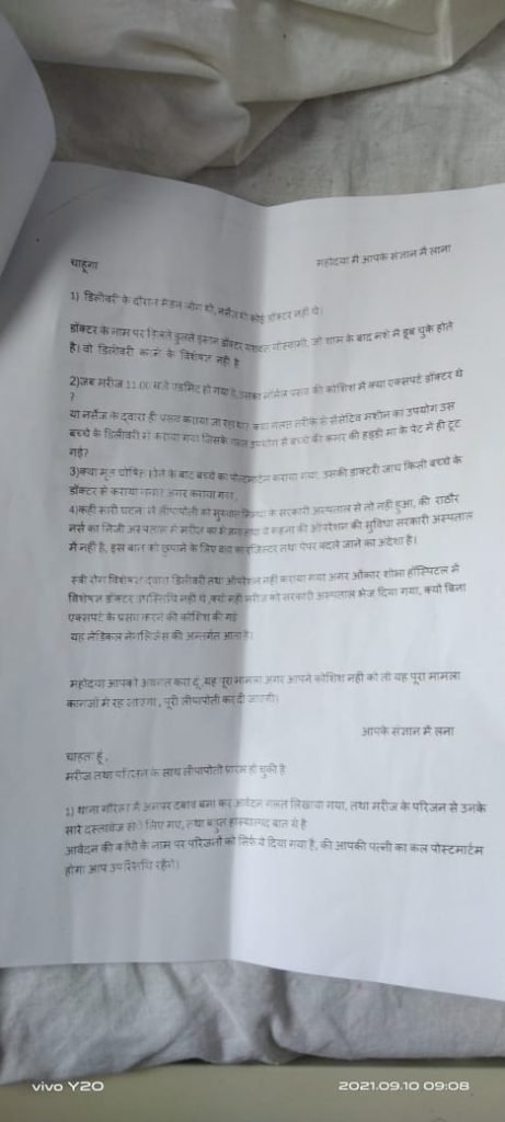 ओमकार शोभा हॉस्पिटल में मरीज लल्लीबाई पति राजेन्द्र को एडमिट करने के बाद से ले के कर 2 बजे तक नॉर्मल प्रसव के लिए प्रसव कक्छ में रखा गया, वहा की आपबीती मरीज ने परिजन को मृत्य होने से पहले बयान कि थी,अमानवीय घटना में यह आप बीती इतनी दर्दनाक है, आप के रोंगटे खड़े हो जाएंगे,ये आप वीडियो में देख सकते है।
