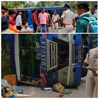 *अमरकंटक जा रही तीर्थ यात्री बस घाटी में पलटी आधा दर्जन लोग हुए घायल*