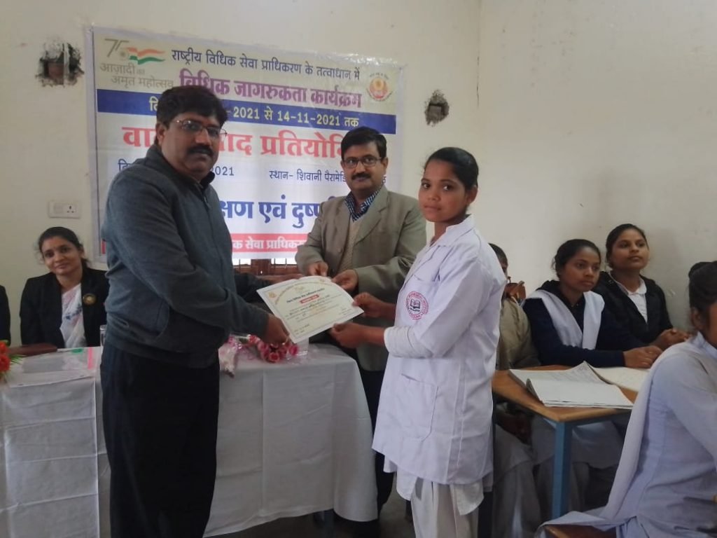 वाद-विवाद प्रतियोगिता में काफी संख्या में प्रतिभागियों ने भाग लिया एवं प्रमाण पत्र वितरित किया गया। इस अवसर पर शिवानी पैरामेडिकल कॉलेज के संचालक एवं कर्मचारी, जिला लोक अभियोजन अधिकारी, पैनल अधिवक्ता पैरालीगल वालेंटियर्स, सहित छात्र-छात्राऐं उपस्थित रहीं।