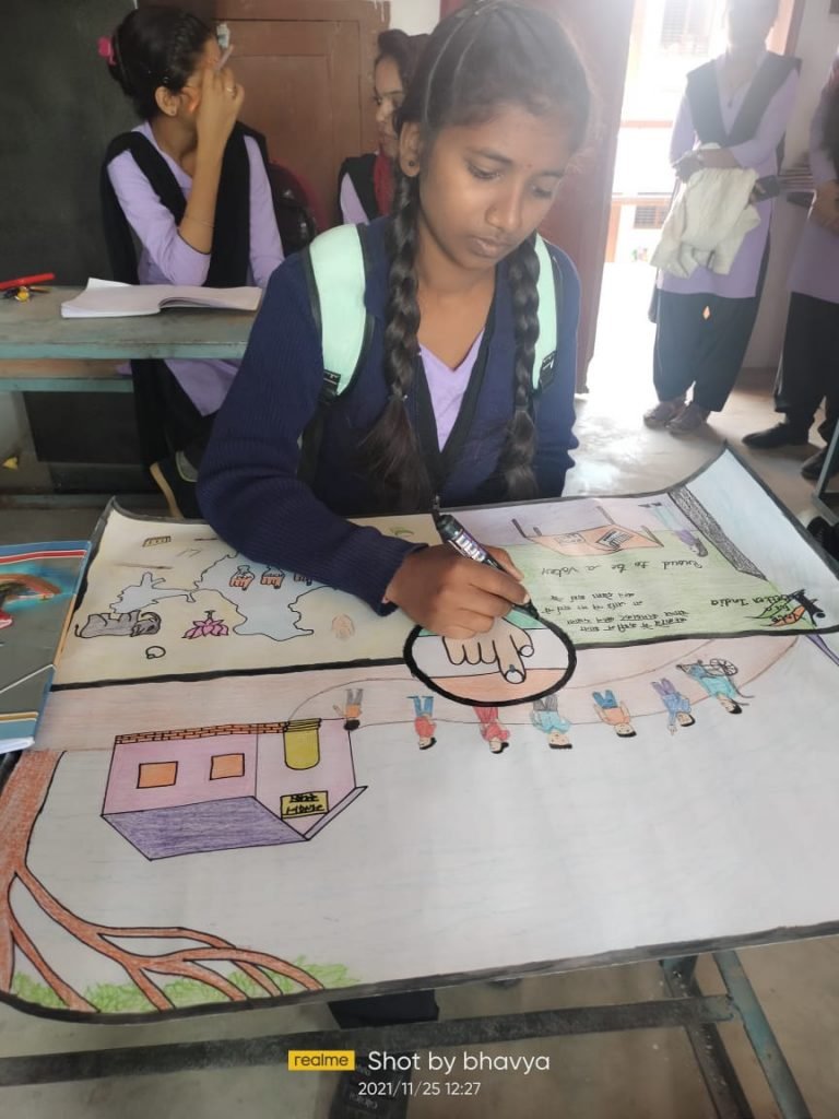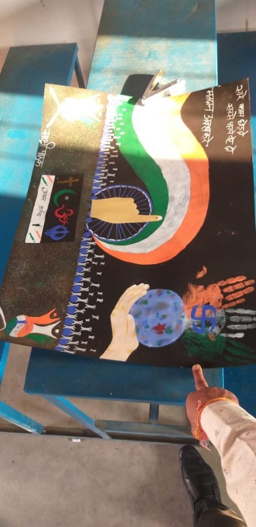 चित्रों के साथ ही छात्राओं ने वोट द बेटर इंडिया, मेरा वोट मेरा भविष्य, सुन लो भाई, सुन लो बहना, सबसे कहना, वोट जरूर देना, बहकावे में कभी न आना, सोच समझकर बटन दबाना, सारे काम छोड़ दो, सबसे पहले वोट दो, मतदान अवश्य करें आदि स्लोगन के माध्यम से मतदाता जागरूकता का संदेश दिया गया।