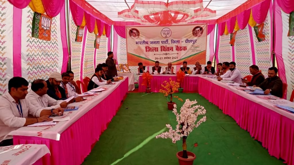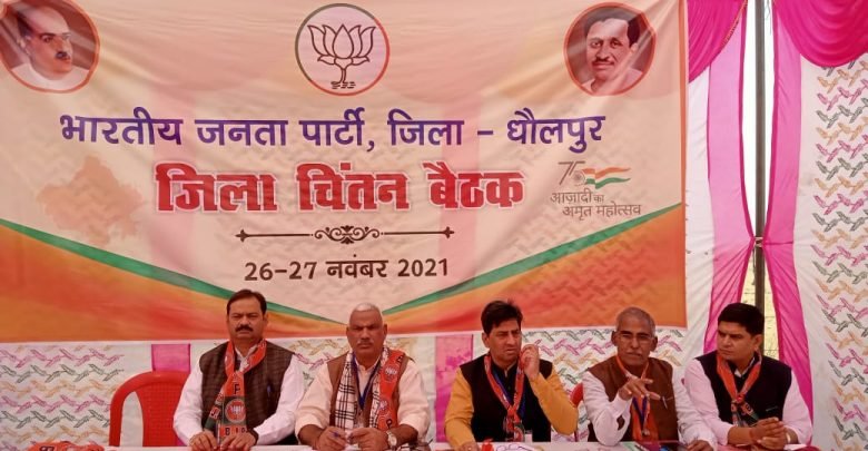बैठक में आगामी विधानसभा मिशन 2023 में धौलपुर की चारों सीटों पर भारतीय जनता पार्टी के प्रत्याशियों को विजयी बनाने एवं राजस्थान में भाजपा की सरकार लाने के लिए दो दिवसीयचिंतन शिविर का आयोजन किया गया।