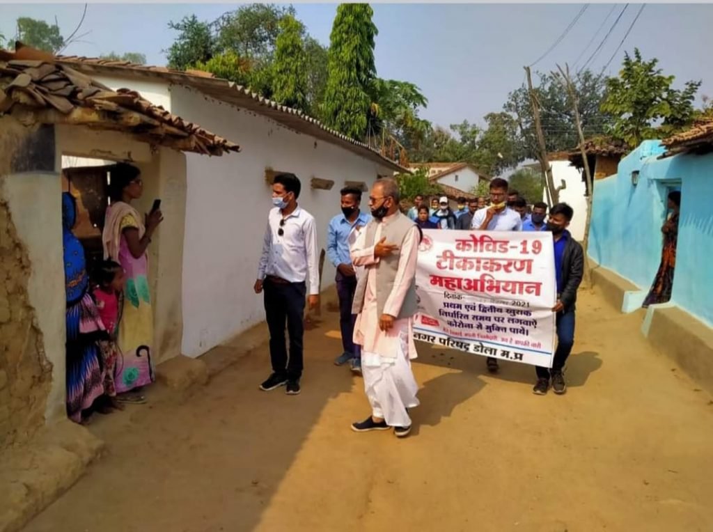 नगर परिषद के लोगों को कोरोना से बचाव के लिए टीका लेने के प्रति जागरूक करने के उद्देश्य से नगर परिषद डोला के वार्ड में जागरूकता रैली निकाली गई कोरोना के तीसरी लहर के बचाव को लेकर तपती धूप के बाद भी घर-घर जा कर लोगों को टीकाकरण के प्रति जागरूक किया गया साथ ही सीएमओ मुनीन्द्र प्रसाद मिश्रा द्वारा वार्ड वासियों से वेक्सिनेशन के दोनों डोज लगवाने के लिए प्रेरित किया गया साथ ही लोगों को कोरोना से बचाने में अपनी सहभागिता सुनिश्चित करने को कहा गया।