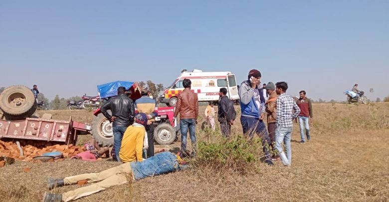 ईट से लोड ट्रैक्टर पलटने पर आधा दर्जन लोग हुए घायल