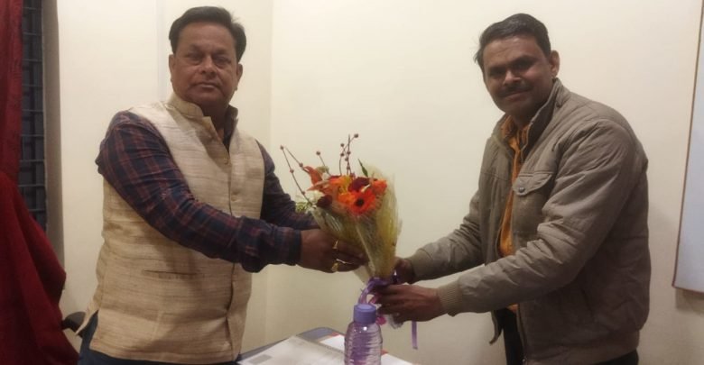 नवगठित नगर परिषद डुमरकछार अधिकारी राकेश शुक्ला का पूर्व उपसरपंच द्वारा पुष्प गुच्छ देकर किया गया स्वागत