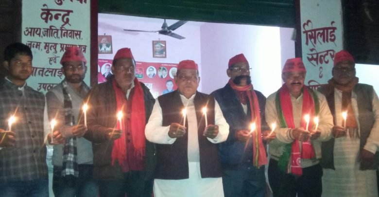 *सपा कार्यालय में एक कैंडल मार्च निकालकर सहित किसानों को दी गई श्रद्धांजलि*