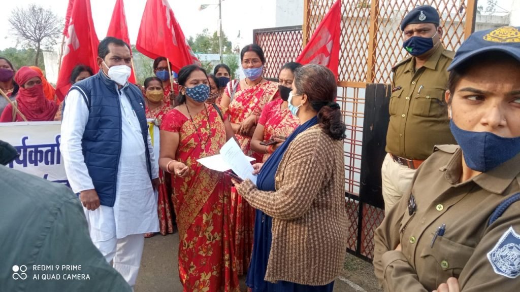 आंगनबाड़ी कार्यकर्ता एवं सहायिका यूनियन एटक के बैनर के नीचे मुख्यमंत्री के नाम एसडीएम को सौपा गया ज्ञापन