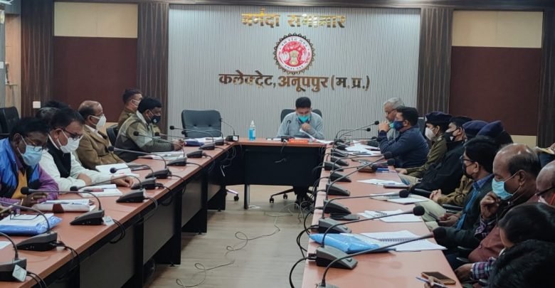 26 जनवरी गणतंत्र दिवस के आयोजन के संबंध में बैठक कलेक्ट्रेट सभागार में प्रभारी कलेक्टर एवं जिला पंचायत के मुख्य कार्यपालन अधिकारी हर्षल पंचोली की अध्यक्षता में आयोजित की गई। बैठक में गणतंत्र दिवस का आयोजन गरिमामय रूप से सुनिश्चित करने के लिए सभी जरूरी व्यवस्थाएं पुख्ता करने तथा आयोजन संबंधी जिन विभागों को जिम्मेदारी दी गई है, उन्हें निर्धारित समय से पूर्व अपनी तैयारियां पूर्ण करने के निर्देश दिए गए। बैठक में अपर कलेक्टर सरोधन सिंह, अतिरिक्त पुलिस अधीक्षक अभिषेक राजन, एसडीएम अनूपपुर कमलेष पुरी सहित विभिन्न विभागों के अधिकारी उपस्थित थे।