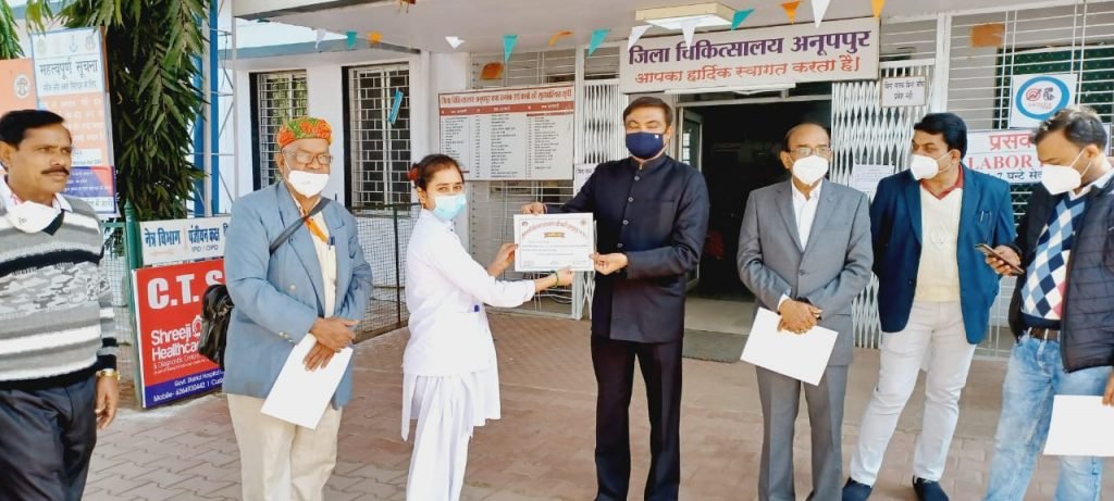 मां नर्मदा स्वास्थ्य सेवा व लोक सेवा समिति के संस्थापक संचालक श्याम सुन्दर बगड़िया, अध्यक्ष अनिल सिंह, उपाध्यक्ष संजय अग्रवाल व वीरेन्द्र शर्मा, महासचिव विनोद सिंह, सचिव विपुल गोयनका, कोषाध्यक्ष अभिषेक गुप्ता, विधि विधाई कार्य प्रभारी गणेश अग्रवाल, जन संपर्क प्रभारी सुनील चौरसिया, लोक सेवा प्रभारी उमेश अग्रवाल, ग्रामीण लोक सेवा प्रभारी हेमबली साहू, रक्तदान शिविर आयोजक रक्तवीर मुकेश जैन, तुलसीदास महरा व धीरेन्द्र कुमार तिवारी, राष्ट्रीय महिला उप प्रमुख रश्मि चतुर्वेदी व संध्या सोनी, जिला प्रभारी इरशाद खान बेगम, शहडोल संभाग महिला प्रभारी बबिता पाण्डेय, अनूपपुर जिला महिला प्रभारी विद्या राठौड़, सह प्रभारी – पूजा गुप्ता, मधु सिंह, देववती अंजू सिंह, रक्त वीरांगनाएं – किरण गोयनका,अर्चना मिश्रा, पूर्णिमा सिंह, जया गुप्ता, अनामिका चतुर्वेदी, श्रीमती राजकुमारी देवी प्रसाद, नविता पटेल, सुश्री सुनंदा रावत तथा सहयोगी संस्था – निःस्वार्थ सेवा ग्रुप को सम्मान पत्र से सम्मानित किया गया।