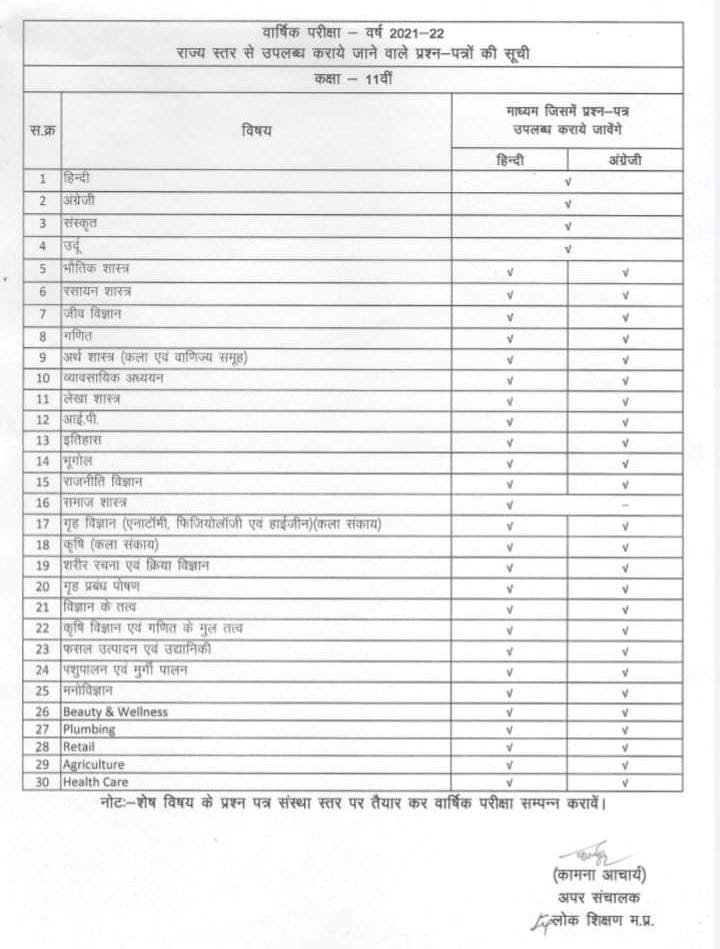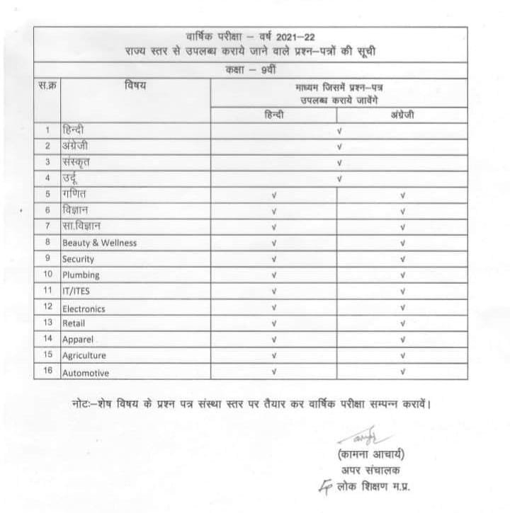 स्कूल शिक्षा विभाग द्वारा शैक्षिक सत्र 2021-22 की कक्षा 9वीं और 11वीं की वार्षिक परीक्षा का टाइम टेबल जारी कर दिया गया है। संचालक लोक शिक्षण श्री के.के. द्विवेदी ने बताया कि प्रदेश के सभी शासकीय हाई और हायर सेकेंडरी विद्यालयों में कक्षा 9वीं और 11वीं की परीक्षा सुबह 8:30 से 11:30 के बीच आयोजित की जाएगी ।