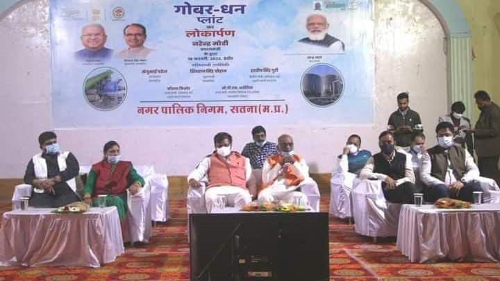 मध्य प्रदेश के अंतर्गत जिला सतना में 19 फरवरी 2022/ को प्रधानमंत्री श्री नरेंद्र मोदी ने शनिवार को मध्यप्रदेश के इंदौर शहर में 550 मीट्रिक टन क्षमता के गोबर-धन (बायो सीएनजी) प्लांट का लोकार्पण किया। कार्यक्रम का सीधा प्रसारण प्रदेश के सभी नगर निगम, नगर पालिका एवं परिषदों में एलईडी स्क्रीन के माध्यम से देखा और सुना गया। सतना नगर निगम के अंतर्गत जिला स्तरीय कार्यक्रम टाउन हॉल सतना में सांसद श्री गणेश सिंह के मुख्यातिथ्य में हुआ। कलेक्टर श्री अनुराग वर्मा, उपायुक्त नगर निगम श्री भूपेंद्र देव परमार, पूर्व महापौर श्रीमती ममता पांडेय, पूर्व स्पीकर श्री अनिल जायसवाल, पूर्व अध्यक्ष केंद्रीय सहकारी बैंक श्री रत्नाकर चतुर्वेदी सहित पूर्व पार्षद गण भी उपस्थित रहे। कार्यक्रम का शुभारंभ सांसद गणेश सिंह ने दीप प्रज्ज्वलन कर किया।