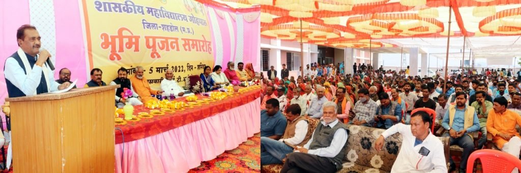 शहडोल जिले के प्रभारी मंत्री रामखेलावन पटेल ने शनिवार को गोहपारू में लगभग 6 करोड़ 17 लाख 82 हजार रूपये की लागत से बनने वाली शासकीय महाविद्यालय गोहपारू के भवन का भूमि पूजन किया। इस अवसर पर आयोजित समारोह को सम्बोधित करते हुए प्रभारी मंत्री रामखेलावन पटेल ने कहा कि शहडोल जिले के जनप्रतिनिधियों ने मुख्यमंत्री से जो मांग कीे उनके अनुरूप मुख्यमंत्री द्वारा शहडोल जिले को सर्वप्रथम संभाग बनाया गया, मेडिकल कॉलेज इंजीनियरिंग कॉलेज की सौगात दी गई। उन्होंने कहा कि अब शहडोल नगर में सीवरेज सिस्टम तथा जनपद पंचायतो में कन्या परिसरों का निर्माण भी कराया जाएगा। उन्होंने कहा कि गोहपारू में निर्मित होने वाले महाविद्यालय भवन का निर्माण समय-सीमा में हो तथा निर्माण कार्य में गुणवत्ता हो इसकी व्यवस्था सुनिश्चित हो। उन्होंने कहा कि प्रधानमंत्री के नेतृत्व में देश निरंतर प्रगति की ओर आगे बढ़ रहा है।