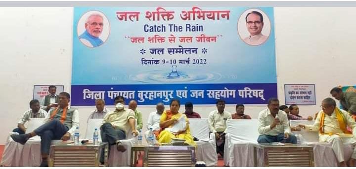 मध्य प्रदेश के अंतर्गत जिला बुरहानपुर में 10 मार्च, 2022/ को जिले में आज खकनार विकासखण्ड अंतर्गत ‘‘जल शक्ति अभियान, कैच द रेन‘‘ अंतर्गत एक दिवसीय जल सम्मेलन का आयोजन किया गया। यह जल सम्मेलन कार्यक्रम इंदिरा कॉलोनी स्थित परमानंदजी गोविंदजीवाला ऑडिटोरियम में आयोजित हुआ। इस अवसर पर पूर्व केबिनेट मंत्री श्रीमति अर्चना चिटनीस, कलेक्टर श्री प्रवीण सिंह, जिला पंचायत सीईओ श्री रोहित सिसोनिया, खकनार विकासखण्ड के सदस्यगण, सरपंच, सचिव, रोजगार सहायक सहित अन्य गणमान्य नागरिकगण उपस्थित रहे।