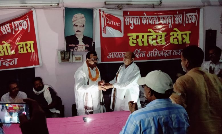 कामरेड हरिद्वार जी का स्वागत किए हसदेव क्षेत्र के राजनगर के शहीद भगत सिंह चौक मैं स्थित एटक कार्यालय में स्वागत समारोह का आयोजन क्षेत्रीय अध्यक्ष कामरेड आरएन राम की अध्यक्षता में किया गया सर्वप्रथम एटक के क्षेत्रीय सचिव कामरेड कन्हैया सिंह साल श्रीफल एवं माला से मजदूरों के लोकप्रिय नेता कामरेड हरिद्वार सिंह का स्वागत किए। फिर अपने लोकप्रिय नेता को माला डालने की होड़ सी लग गई सभी उपक्षेत्रीय सचिव एवं नौजवानों, ठेका कर्मियों ने माला डाला आंगनवाड़ी कार्यकर्ता एवं सहायिका यूनियन के जिला अध्यक्ष कामरेड अंजली श्रीवास्तव कार्यवाहक अध्यक्ष कामरेड लीला बांधव जिला सचिव कामरेड उर्मिला पाव एवं कोषाध्यक्ष कामरेड सविता तिवारी ने सामूहिक रूप से प्रांतीय अध्यक्ष कामरेड हरिद्वार सिंह का साल श्रीफल एवं पुष्पगुच्छ से स्वागत किया इस अवसर पर एसईसीएल सुरक्षा समिति के मेंबर कामरेड बी धर्मा राव ,एटक के हसदेव क्षेत्र के संस्थापक सदस्य एवं पूर्व क्षेत्रीय अध्यक्ष कामरेड रामकुमार तिवारी जी इस समारोह में शामिल हुए वरिष्ठ कम्युनिस्ट नेता एवं क्षेत्रीय जेसीसी के सदस्य कामरेड विजय सिंह ने विधिवत समारोह में मंच का संचालन किया भारतीय कम्युनिस्ट पार्टी के जिला सचिव कामरेड संतोष केवट भी समारोह में मौजूद थे सभी लोगों ने अपने नेता कामरेड हरिद्वार सिंह के सम्मान में मंच को साझा किया समारोह के आकर्षण के मुख्य बिंदु एवं मजदूरों के सर्वाधिक संघर्षशील नेता कामरेड हरिद्वार सिंह ने अपने उद्बोधन में हसदेव क्षेत्र को याद करते हुए कहा हसदेव क्षेत्र के मजदूरों ने मुझे सिखा पढ़ा कर इस लायक बना दिया की एटक ने मुझे वर्ल्ड फेडरेशन ऑफ ट्रेड यूनियन के कान्फ्रेंस में जाने के लिए चयन किया यह अवार्ड अथवा सम्मान मेरी व्यक्तिगत नहीं है यह अति विशिष्ट उपलब्धि हसदेव क्षेत्र के मजदूरों एसईसीएल के मजदूरों एवं मध्य प्रदेश के एटक हजारों कार्यकर्ताओं के मेहनत एवं सेवा का सामूहिक परिणाम है उन्होंने कहा वर्ल्ड फेडरेशन ऑफ ट्रेड यूनियन से दुनिया के 133 देश जुड़े हुए हैं पंचानवे देश के प्रतिनिधियों ने सम्मेलन में भाग लिया 91 प्रतिनिधियों ने बहस में हिस्सा लिया वर्ल्ड फेडरेशन ऑफ ट्रेड यूनियन के सेक्रेटरी जनरल कामरेड जार्ज मावरी कोष मैं अपने 2 घंटे के उद्घाटन भाषण में दुनिया के सभी देशों में मजदूर आंदोलन के स्थिति पर विस्तार से प्रकाश डाला उन्होंने एटक को वर्ल्ड फेडरेशन ऑफ ट्रेड यूनियन का संस्थापक सदस्य बताया तथा एटक के पूर्व महासचिव कामरेड केएल महिंद्रा के सहयोग की सराहना किया कामरेड हरिद्वार सिंह ने का जिक्र करते हुए कहा की 1920 की बनी एटक की दुनिया के नजरों में क्या इज्जत है हमने अपनी आंखों से देखा है यही वजह ह