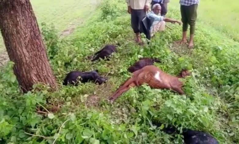 बकरियां अचानक बारिश एवं तड़क गरज से आकाशी बिजली गिरी और 10 बकरियों की मौत हो गई लेकिन चरवाहा बकरियों से दूर रहा बकरियों का मालिक ने दी जानकारियां जो हम आपको दिखा रहे हैं