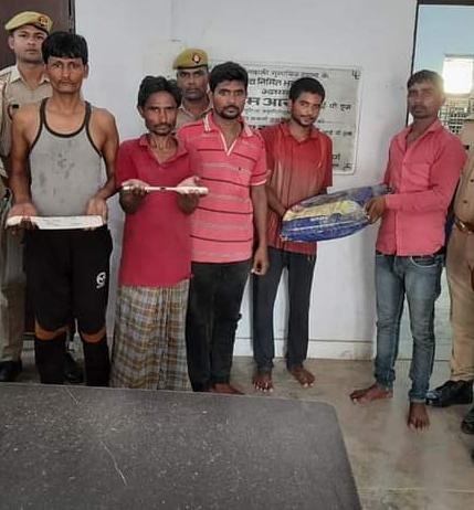 उत्तर प्रदेश जिला अमेठी एवं जनपद अमेठी में अपराध एवं अपराधियों के धर पकड़ हेतु चलाये जा अभियान के क्रम में दिनांक 04.09.2022 को उ0नि0 पवन राठौर थाना मुसाफिरखाना मय हमराह द्वारा तालाश वांछित, देखभाल क्षेत्र, चेकिंग संदिग्ध व्यक्ति, वस्तु, वाहन के दौरान मुखबिर की सूचना पर 05 अभियुक्त 1.अशोक यादव पुत्र रामचन्द्र नि0 ग्राम सीवनगांव पनियार थाना मुंशीगंज जनपद अमेठी, 2.राहुल कुमार पुत्र श्री राम नि0 झलिहन का पुरवा मजरे राजापुर उसरा थाना मुसाफिरखाना जनपद अमेठी, 3.कल्लू उर्फ रियाज पुत्र अब्दुल वहीद नि0 ग्राम ककरहवा थाना कुडवार जनपद सुलतानपुर 4.मोजीव पुत्र अब्दुल रसीद नि0 कोटिया थाना कुडवार जनपद सुलतानपुर 5.शहजादे पुत्र अमीर निवासी हरिईशपुर थाना कोतवाली नगर सुल्तानपुर को बहोरखा से तरसडा जाने वाले मार्ग से समय करीब 12:15 बजे दिन मे गिरफ्तार किया गया । अभियुक्तों के कब्जे से 80 किग्रा0 गोमांश तथा गोवध करने के उपकरण बरामद हुए । थाना मुसाफिरखाना द्वारा विधिक कार्यवाही की जा रही है।