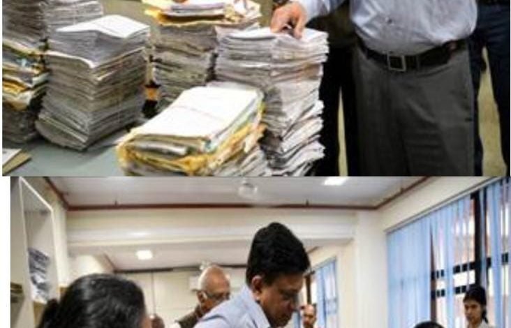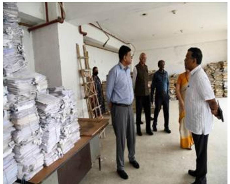 श्री चन्द्रा ने कार्यालय के विभिन्न तलों का जायजा लिया, जिसमें लेखा अनुभाग के विभिन्न अभिलेख कक्ष भी शामिल हैं, जिन्हें इस विशेष अभियान के दौरान उन पुराने भुगतान किए गए बिलों, जो दस साल से अधिक समय से पड़े हुए हैं, को हटाने के लिए चिन्हित किया गया है। अधिकारियों ने सचिव (सूचना और प्रसारण) को पुराने रिकॉर्ड को नष्ट करने और जगह खाली करने के कार्य में हुई प्रगति के बारे में बताया। वर्ष 2017-18 से पहले के रिकॉर्ड को सूचीबद्ध किया गया है और उन्हें नष्ट करने के लिए चुना गया है। 50 प्रतिशत से अधिक काम पहले ही पूरा किया जा चुका है। टीम को छंटाई किए गए बिल को रखने और बिल को नष्ट करने के लिए निर्धारित कमरे भी दिखाए गए। सचिव (सूचना और प्रसारण) ने किए गए कार्य के पैमाने और खाली की गई जगह पर संतोष व्यक्त किया। उम्मीद है कि इस विशेष अभियान के हिस्से के रूप में बिल, आईटी कचरे और अखबार की पुरानी नमूना प्रतियों की सफाई के बाद 2500 वर्ग फुट की जगह खाली हो जाएगी।