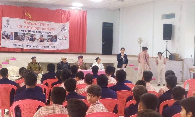 पुलिस अधीक्षक कुमार प्रतीक के निर्देशानुसार जिले में यातायात जनजागरूकता अभियान चलाया जा रहा है। इसी कड़ी में शहडोल पुलिस द्वारा जिला मुख्यालय के सेट एनालायसिस स्कूल का औचक निरीक्षण कर ऐसे नाबालिक छात्र-छात्राएं जो दो पहिया वाहन से विद्यालय आते हैं उनके अभिभावकों को बुलाकर समझाइस दी गई और लगभग 25 वाहनों पर चालानी कार्यवाही कर शहडोल पुलिस द्वारा छात्रों और शिक्षकों को हेलमेट लगाकर दो पहिया वाहन चलाने एवं अन्य यातायात नियमों का पालन करने की समझाइस भी दी गयी।