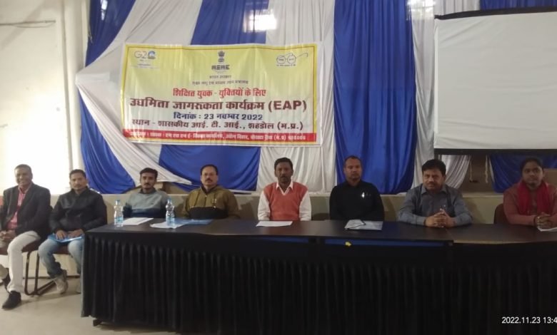 जिला मुख्यालय के शासकीय आई.टी.आई कॉलेज शहडोल में उद्यमिता जागरूकता कार्यक्रम का आयोजन ब्रांच एम. एस.एम.ई. विकास एवं सुविधा कार्यालय रीवा एवं जिला व्यापार एवं उद्योग केन्द्र, शहडोल द्वारा आयोजित किया गया।
