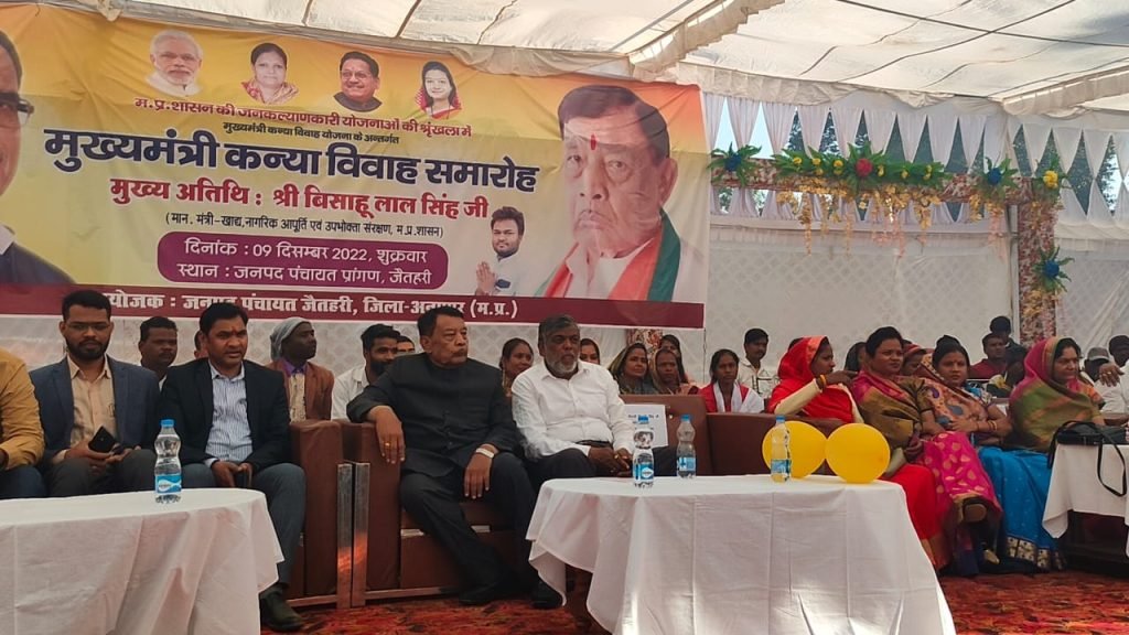 मध्यप्रदेश शासन के खाद्य, नागरिक आपूर्ति एवं उपभोक्ता संरक्षण विभाग के मंत्री बिसाहूलाल सिंह ने मुख्यमंत्री कन्या विवाह योजना के तहत 5 कन्याओं का कन्यादान किया। उन्होंने इस अवसर पर नव युगलों को उपहार भी भेंट किए।